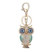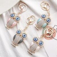 BLUE BEADS Gold with Evil Eye Crystal Rhinestone Sparkling Owl Keychain For Bike/Car Gifting Key Ring For Men Women and Handbag Charm