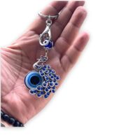 ₹225.00BLUE BEADS Peacock Shape Pendant Blue Evil Eye Keychain Crystal alloy peacock Keyring for Men and Women (Pack of 1)