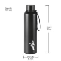 Milton Aura 1000 Thermosteel Bottle, 1050 ml Water Bottles, 24 Hours Hot and Cold, Easy to Carry, Easy Grip, Rust Proof, Tea, Coffee, Office, Travel Bottle, Black Amazon.in Home & Kitchen